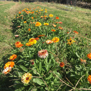 We tried our hand at growing flowers, too: we had great germination with our calendula, despite seeding it in the heat of summer. It has tolerated a couple of light frosts so far. The bachelor's buttons came up great, but only had time for a couple flowers before the one-two punch of frost and deer.